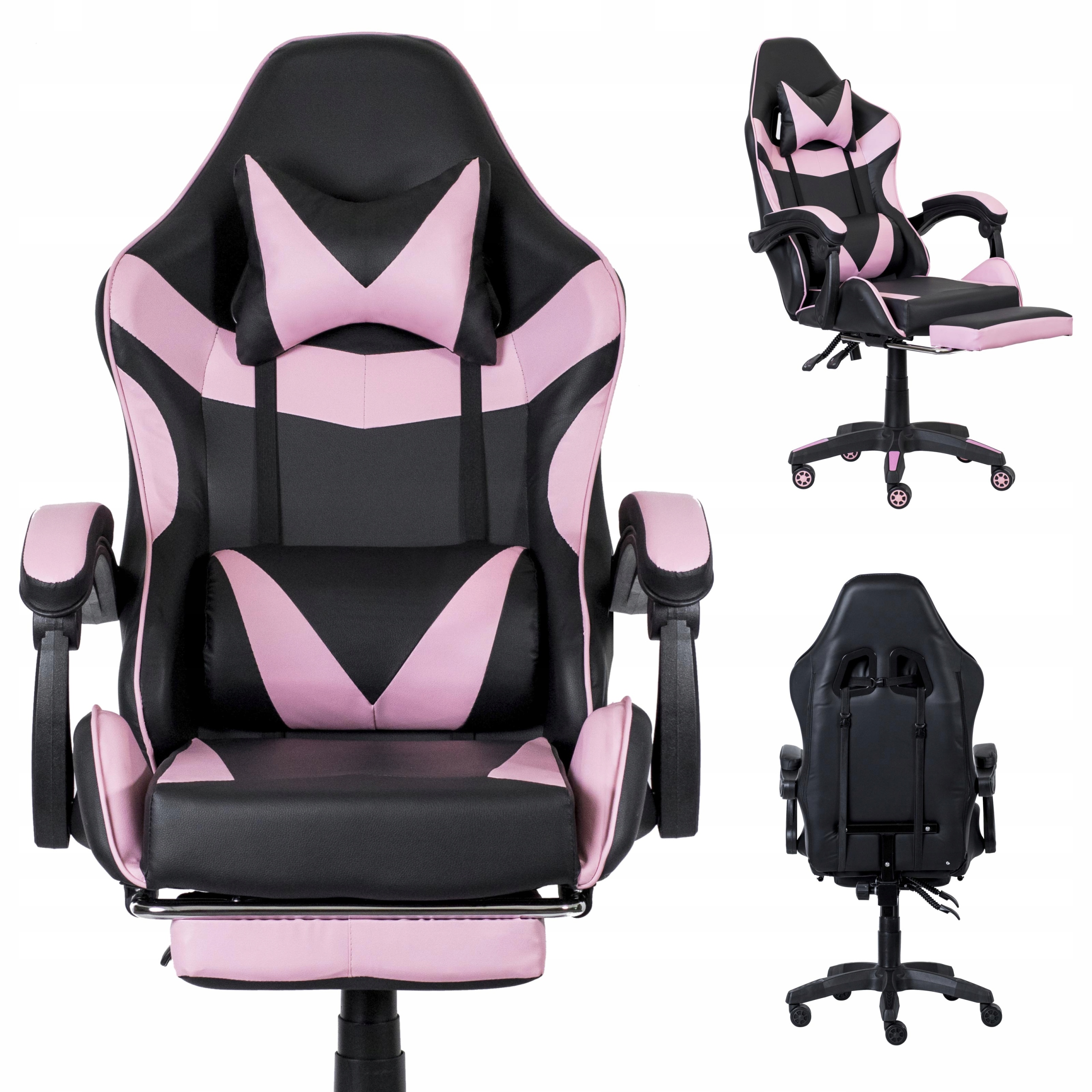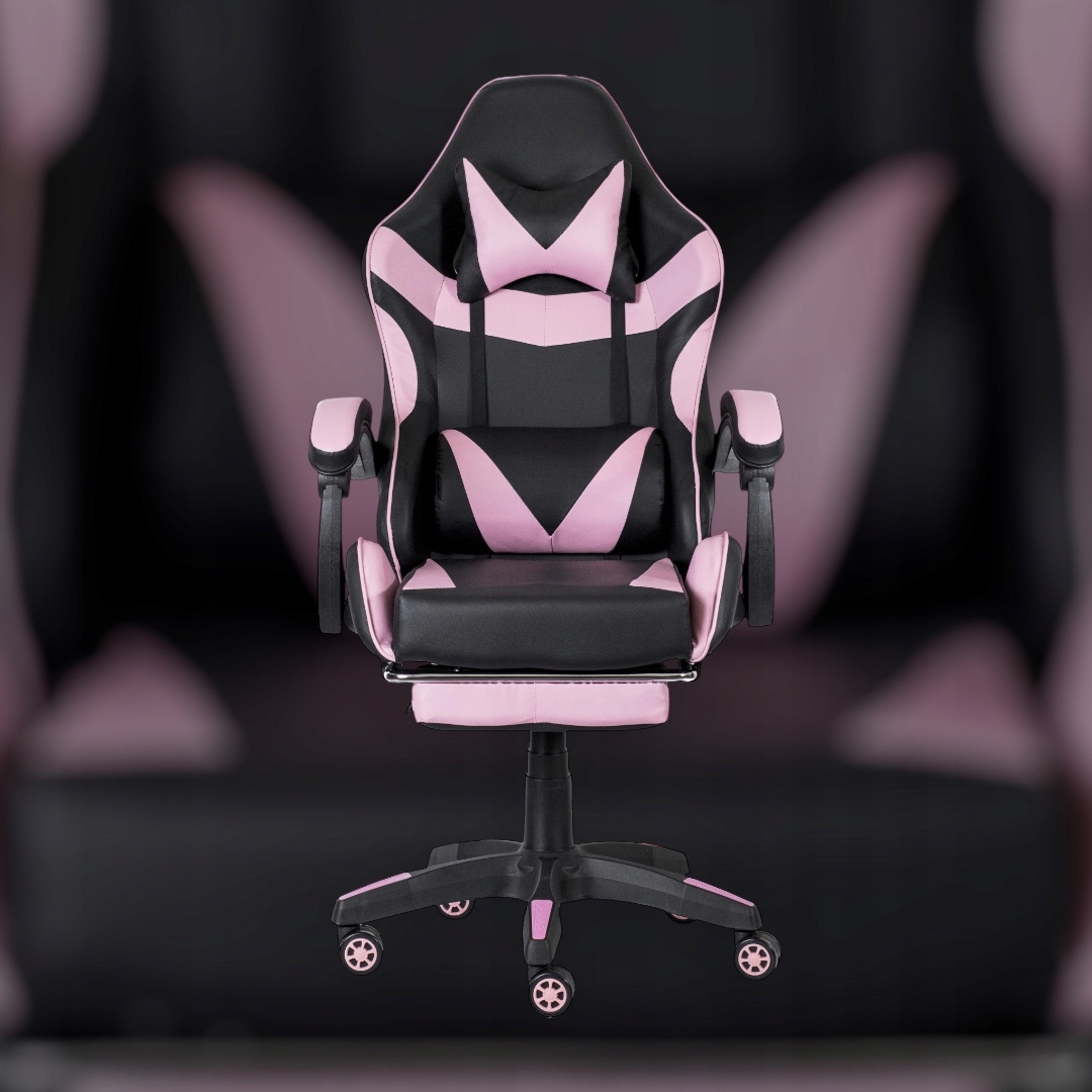 FOTEL GAMINGOWY BIUROWY OBROTOWY KRZESŁO GRACZA EKOSKÓRA CZARNO RÓŻOWY