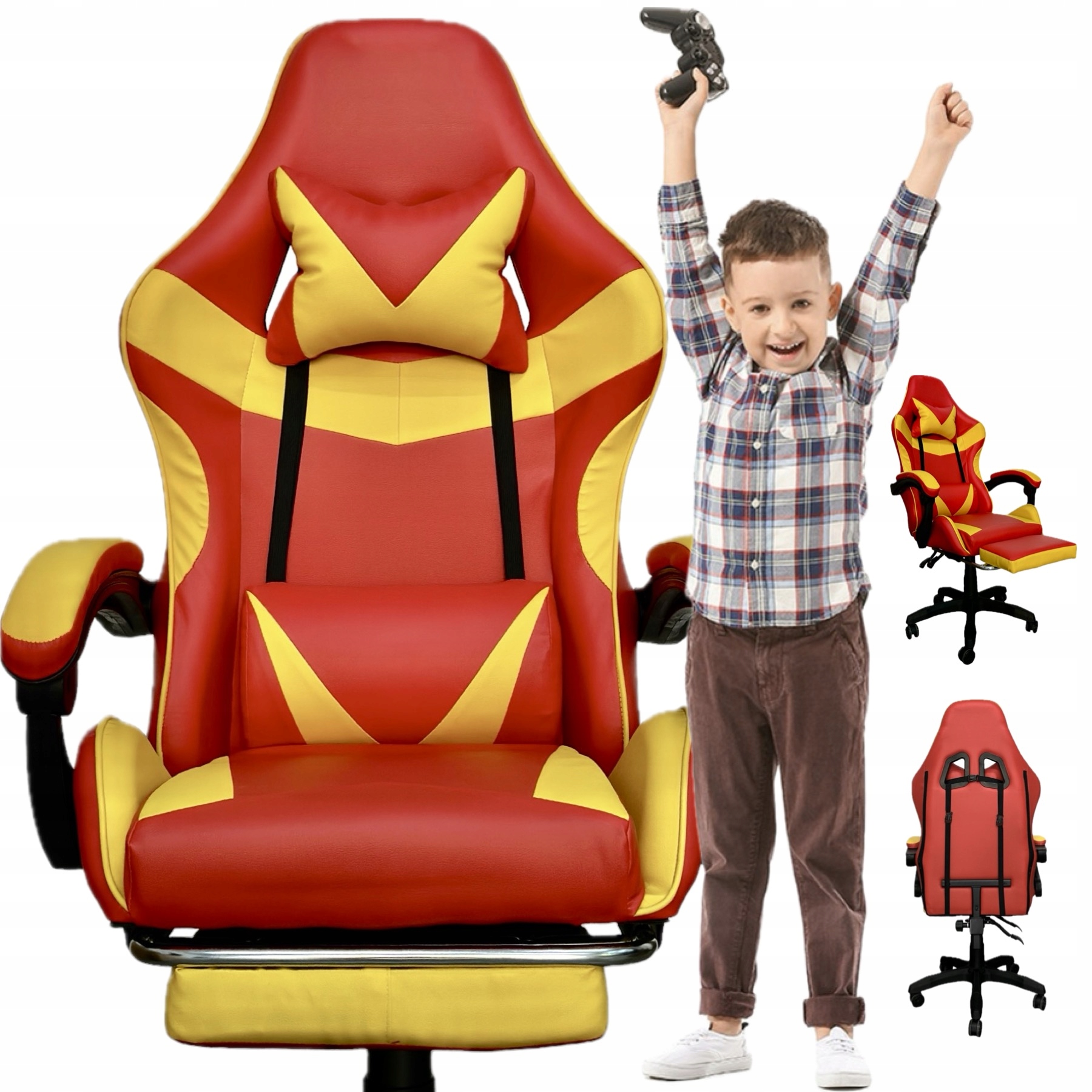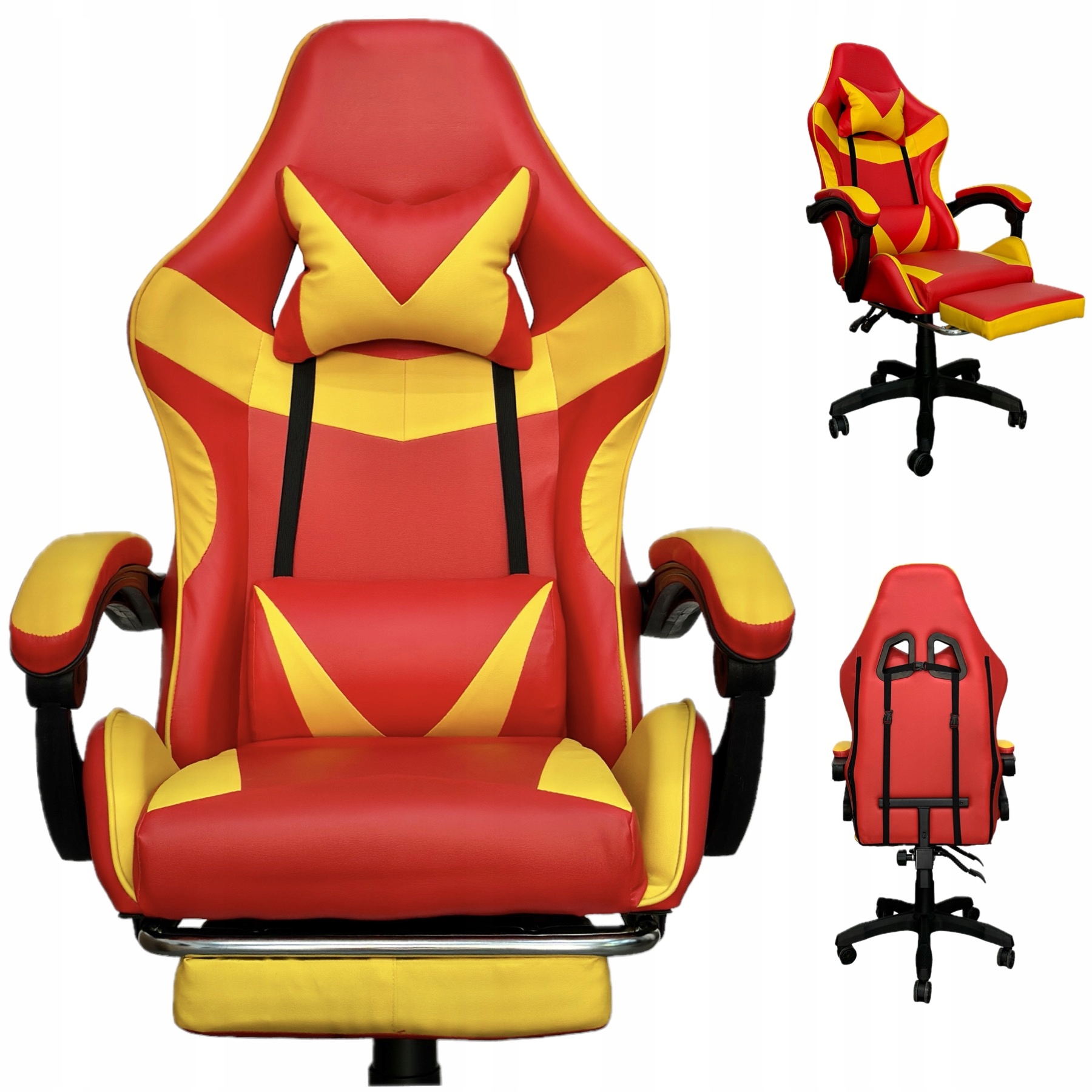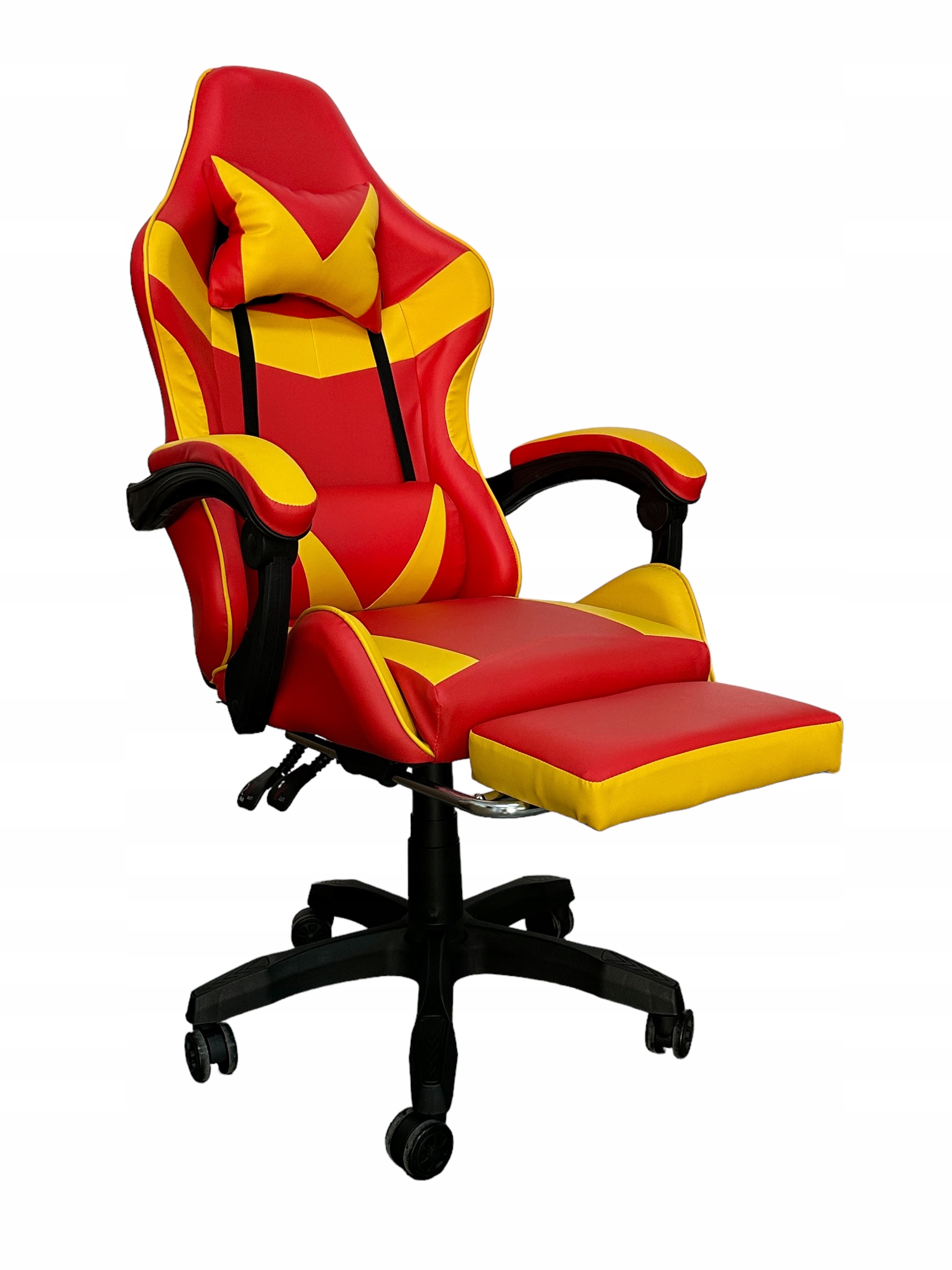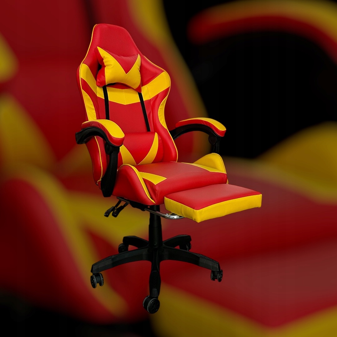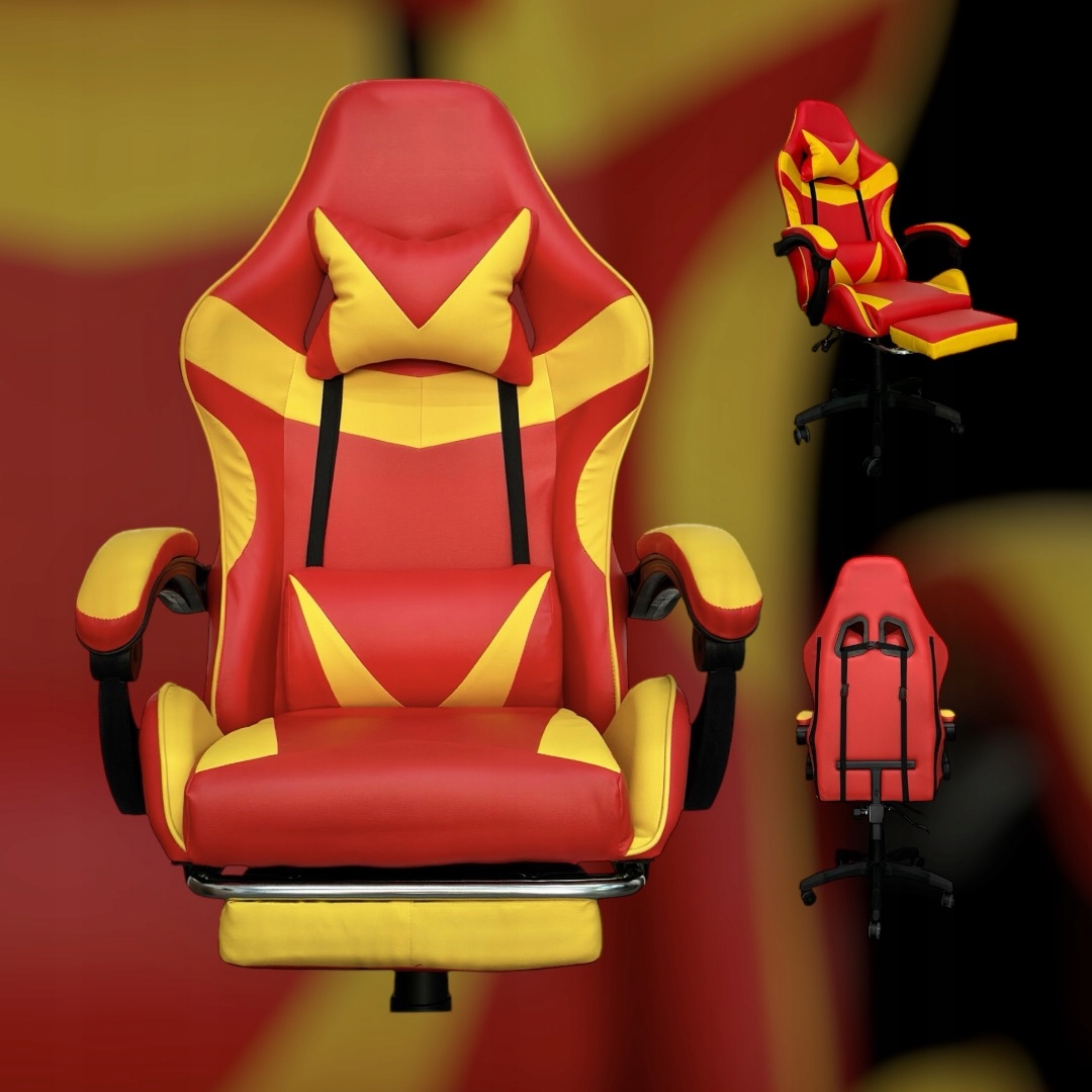 FOTEL GAMINGOWY BIUROWY OBROTOWY KRZESŁO GRACZA EKOSKÓRA CZERWONO ŻÓŁTY