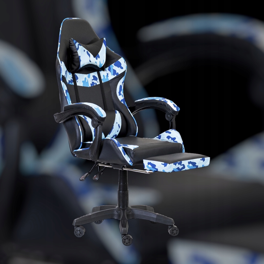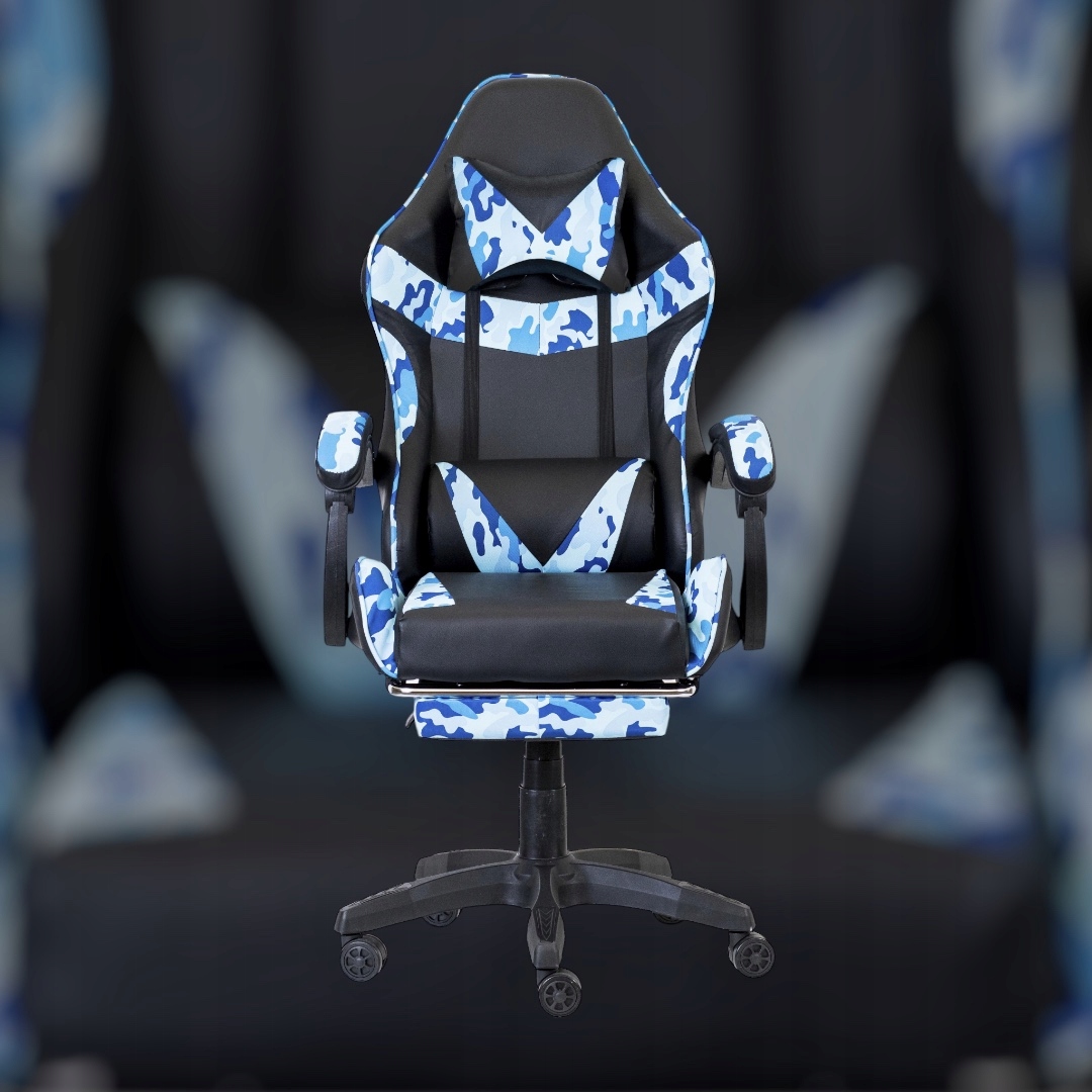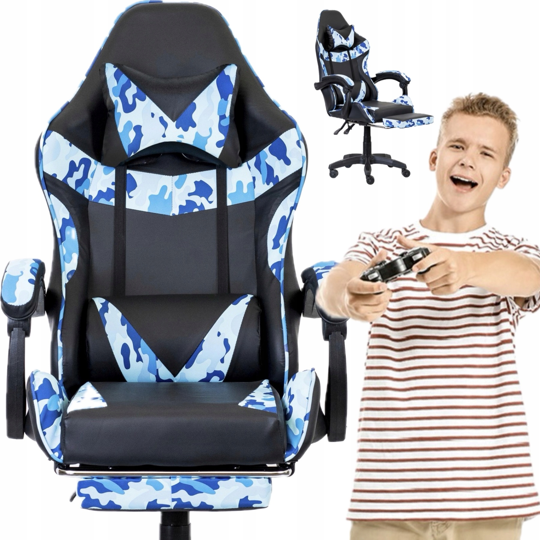 FOTEL GAMINGOWY BIUROWY OBROTOWY KRZESŁO GRACZA EKOSKÓRA MORO NIEBIESKIE