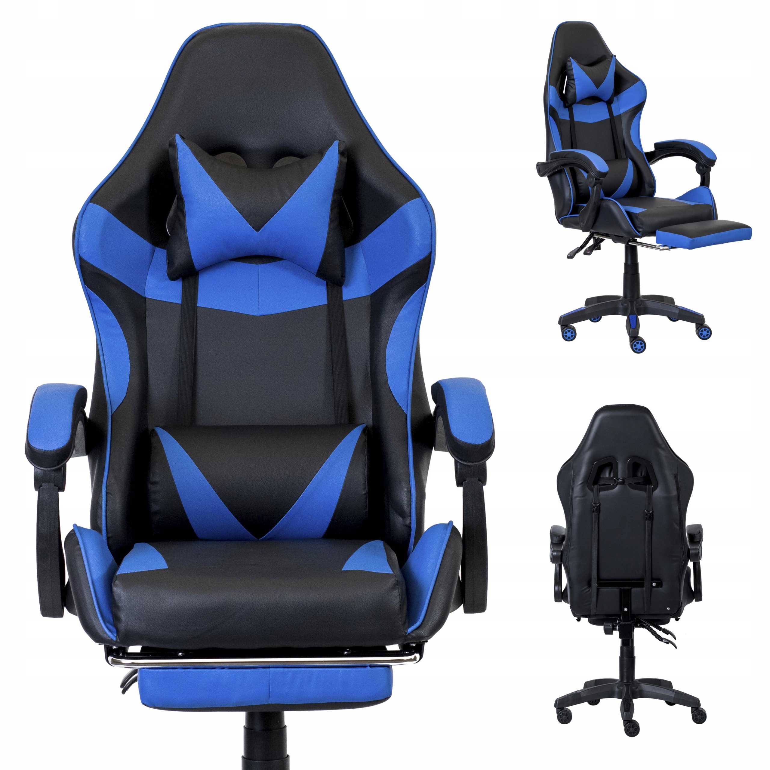 FOTEL GAMINGOWY BIUROWY OBROTOWY KRZESŁO GRACZA EKOSKÓRA NIEBIESKI