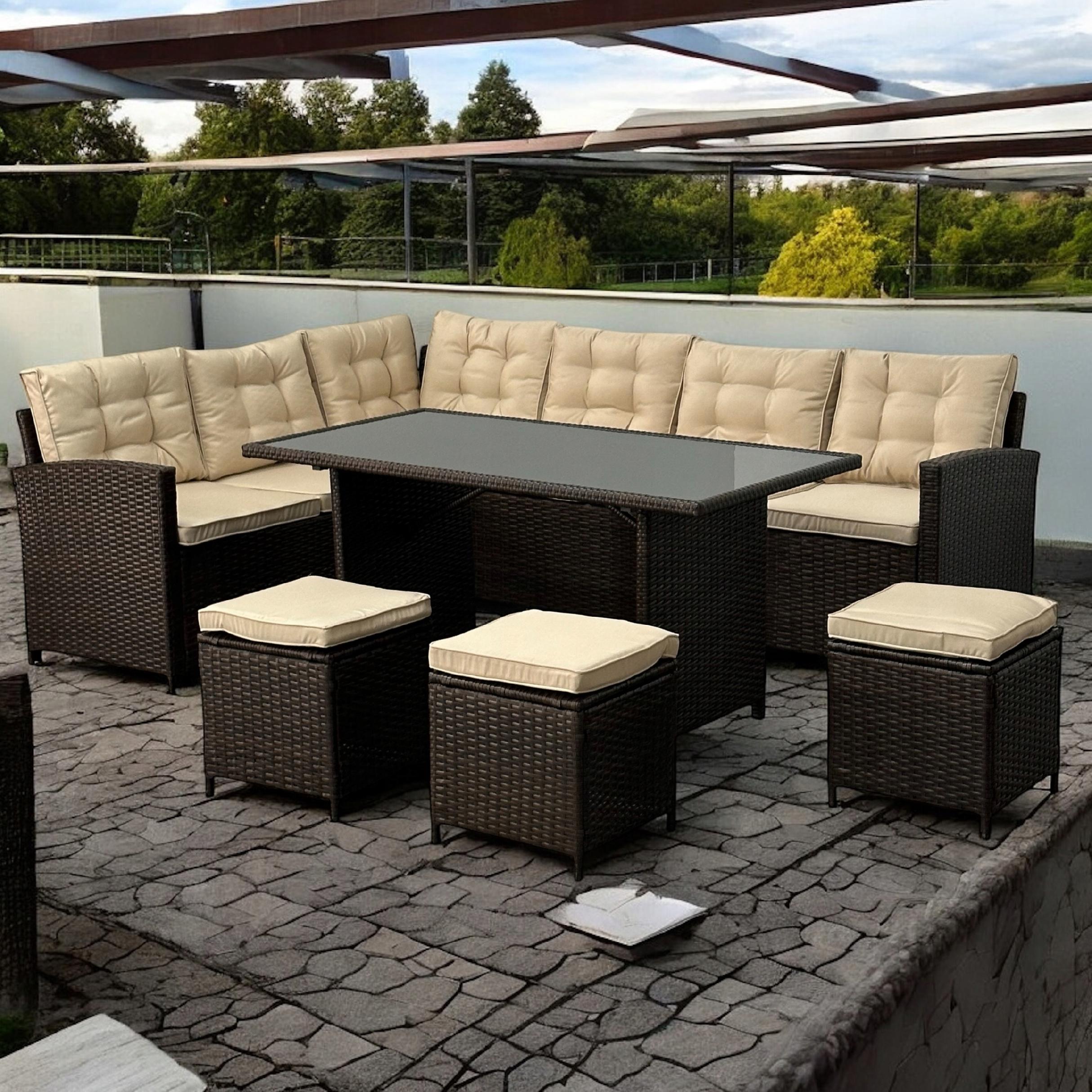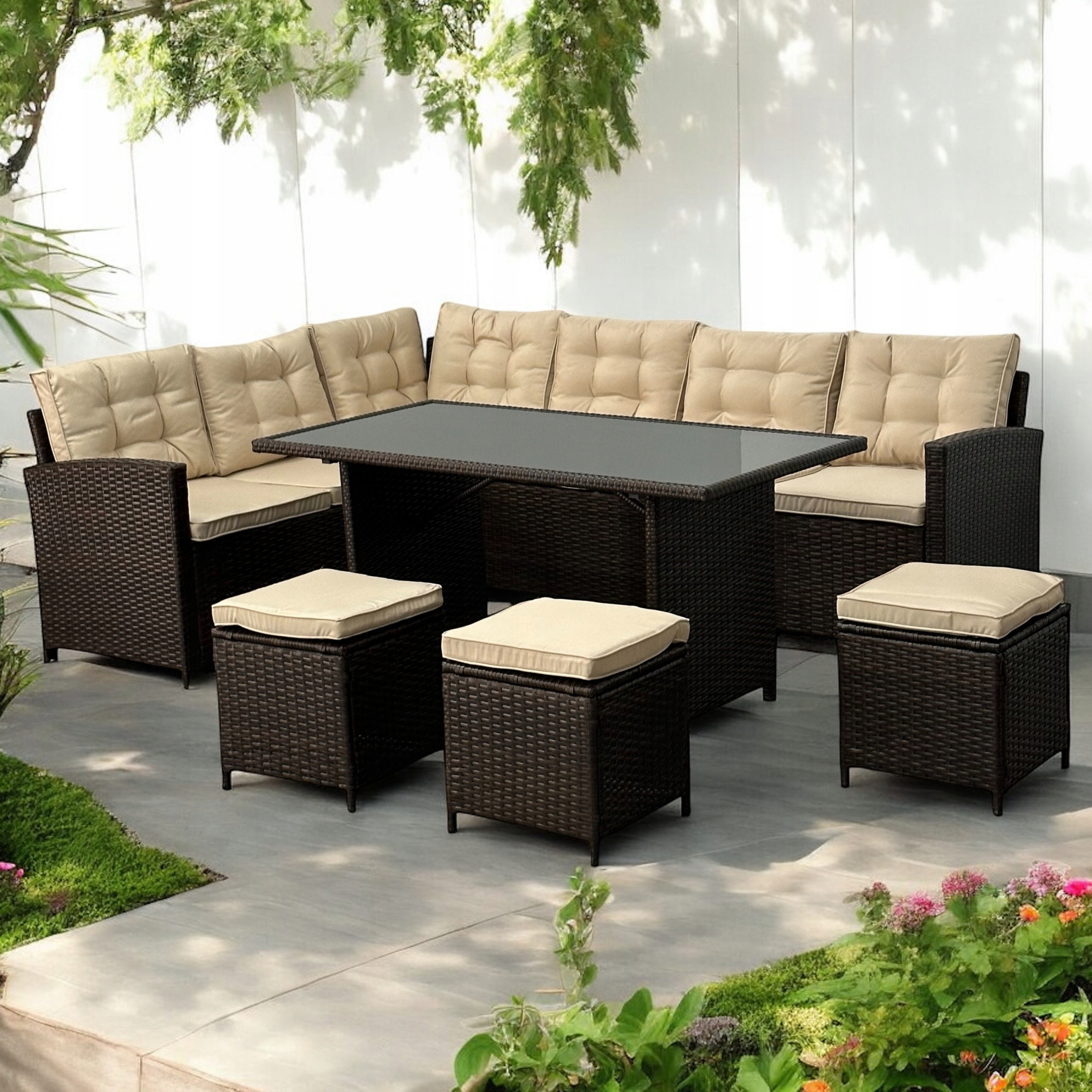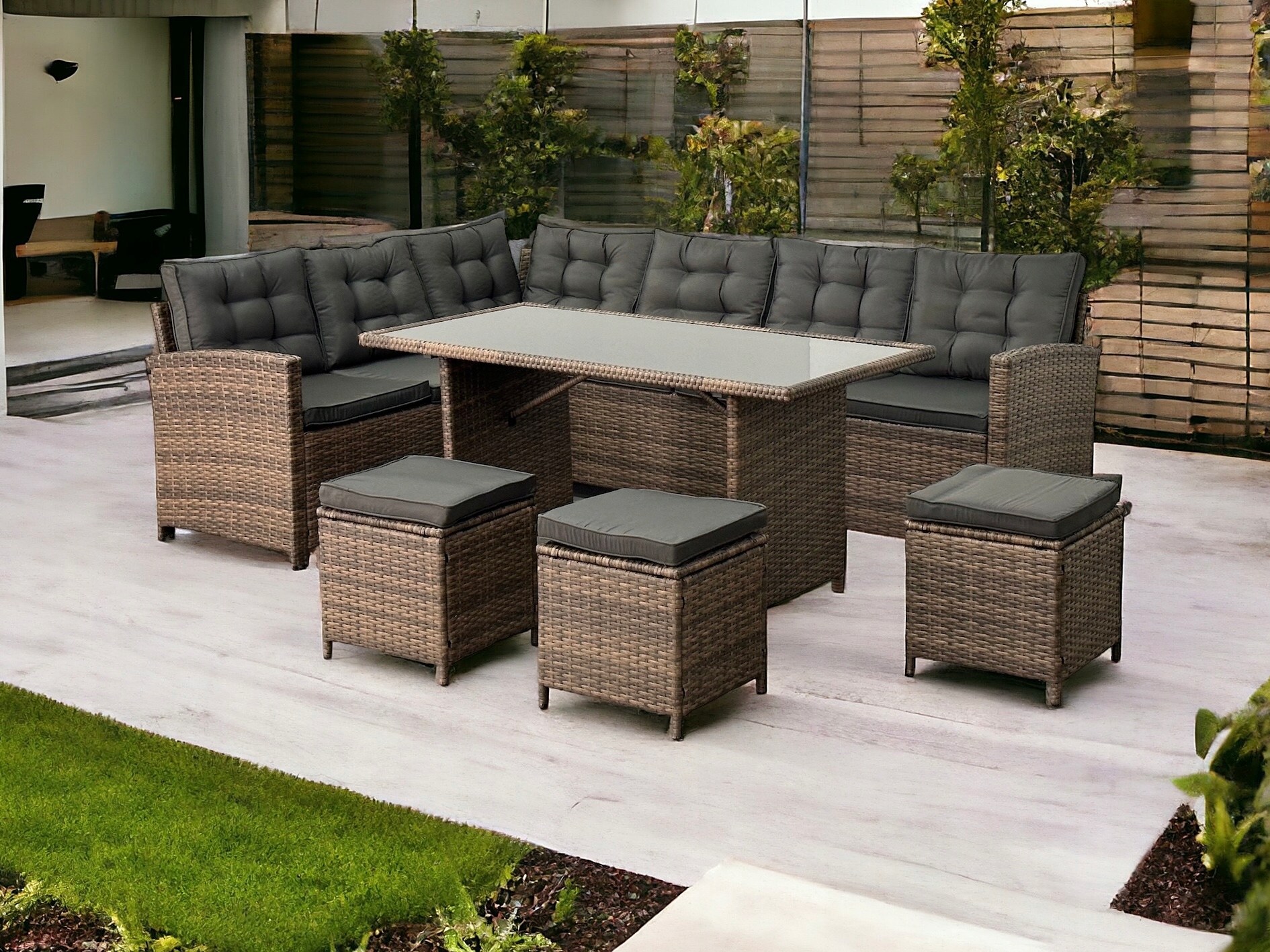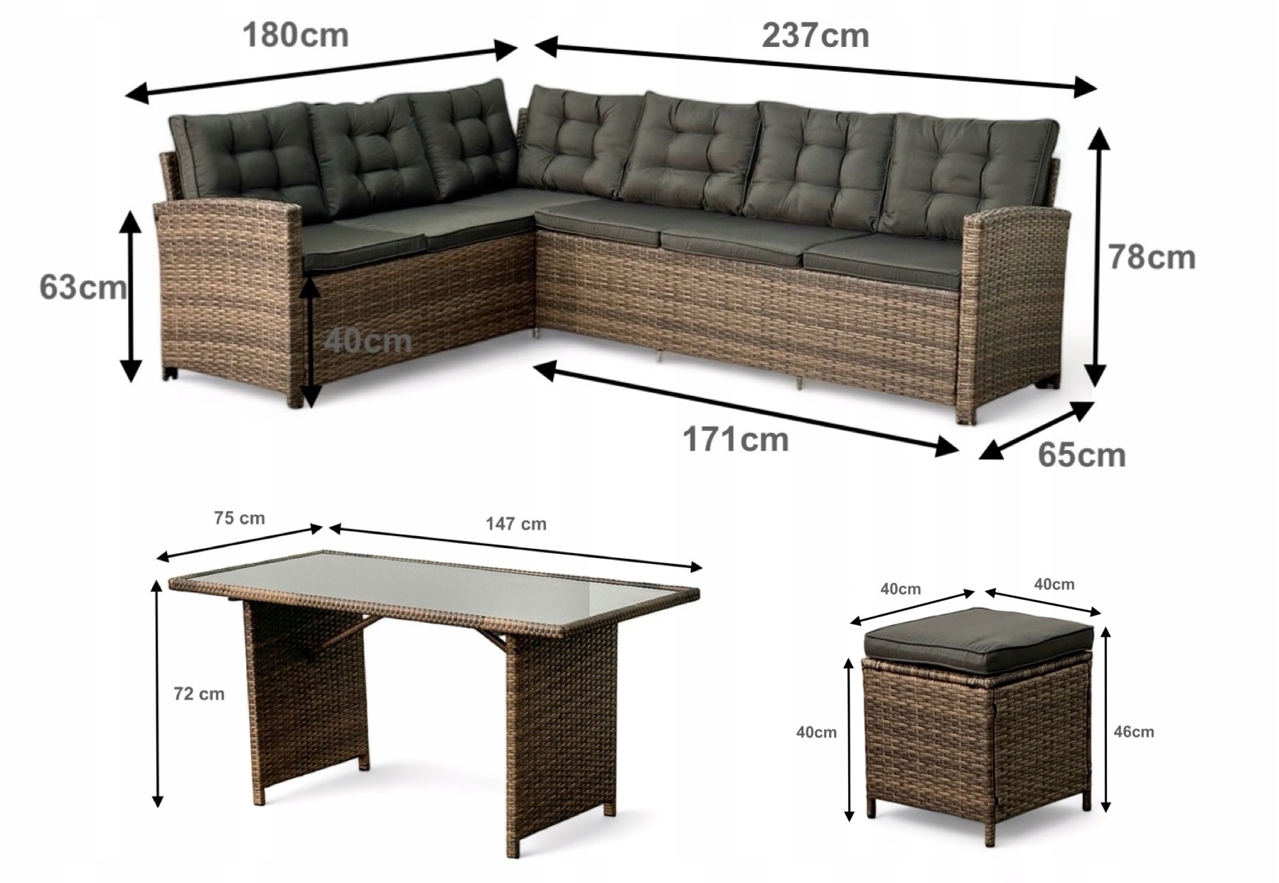 NAROŻNIK OGRODOWY SFS019 XXL DUŻY ZESTAW MEBLI OGRODOWYCH BRĄZ IDEAL GARDEN
