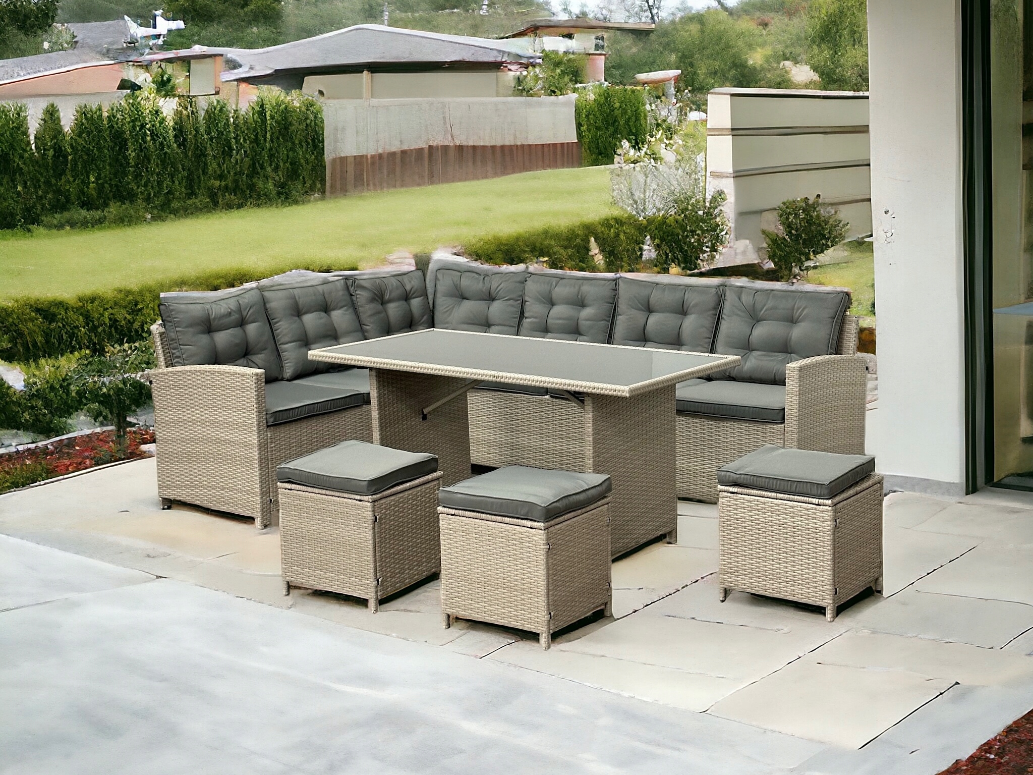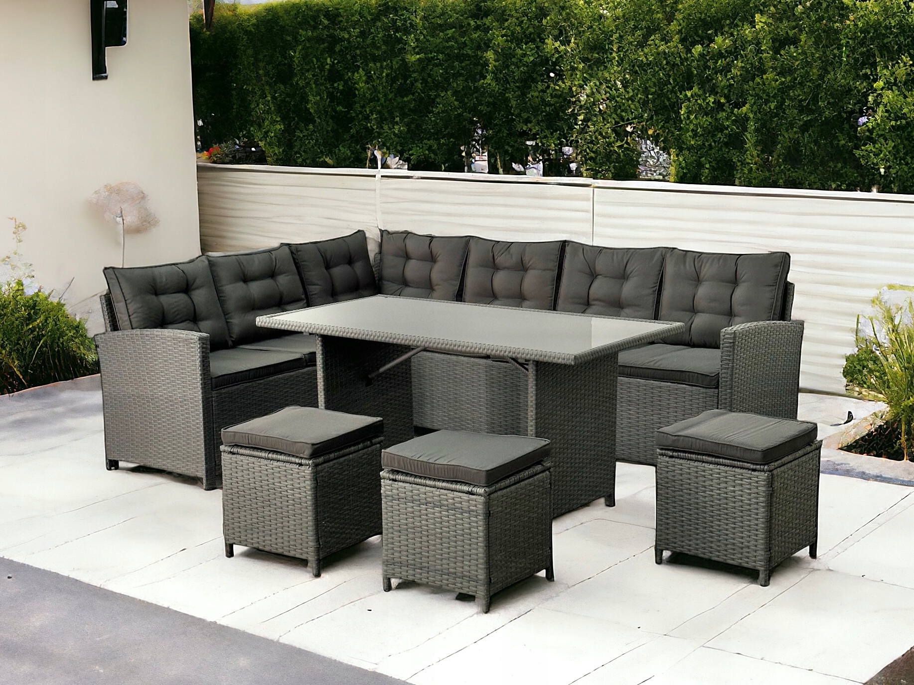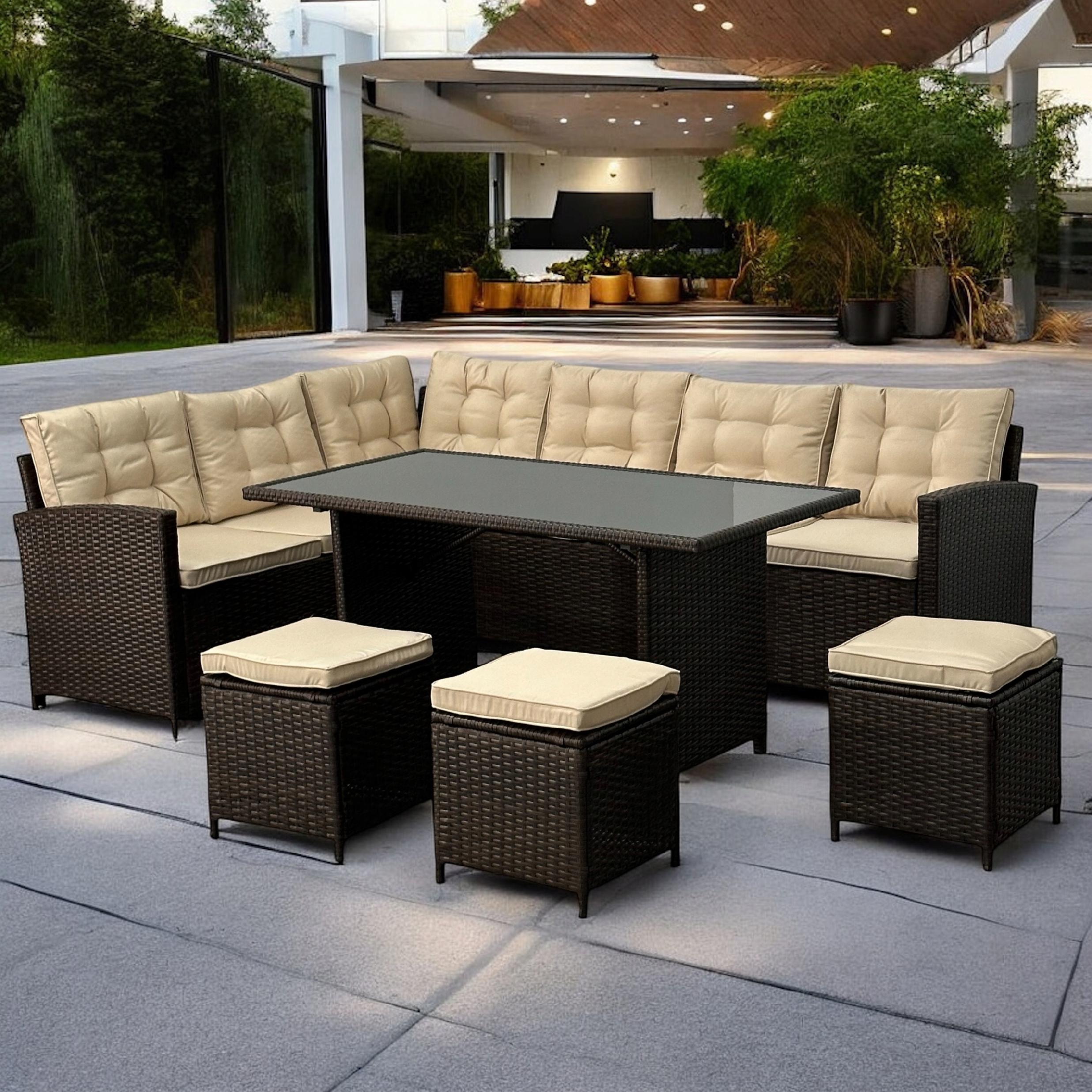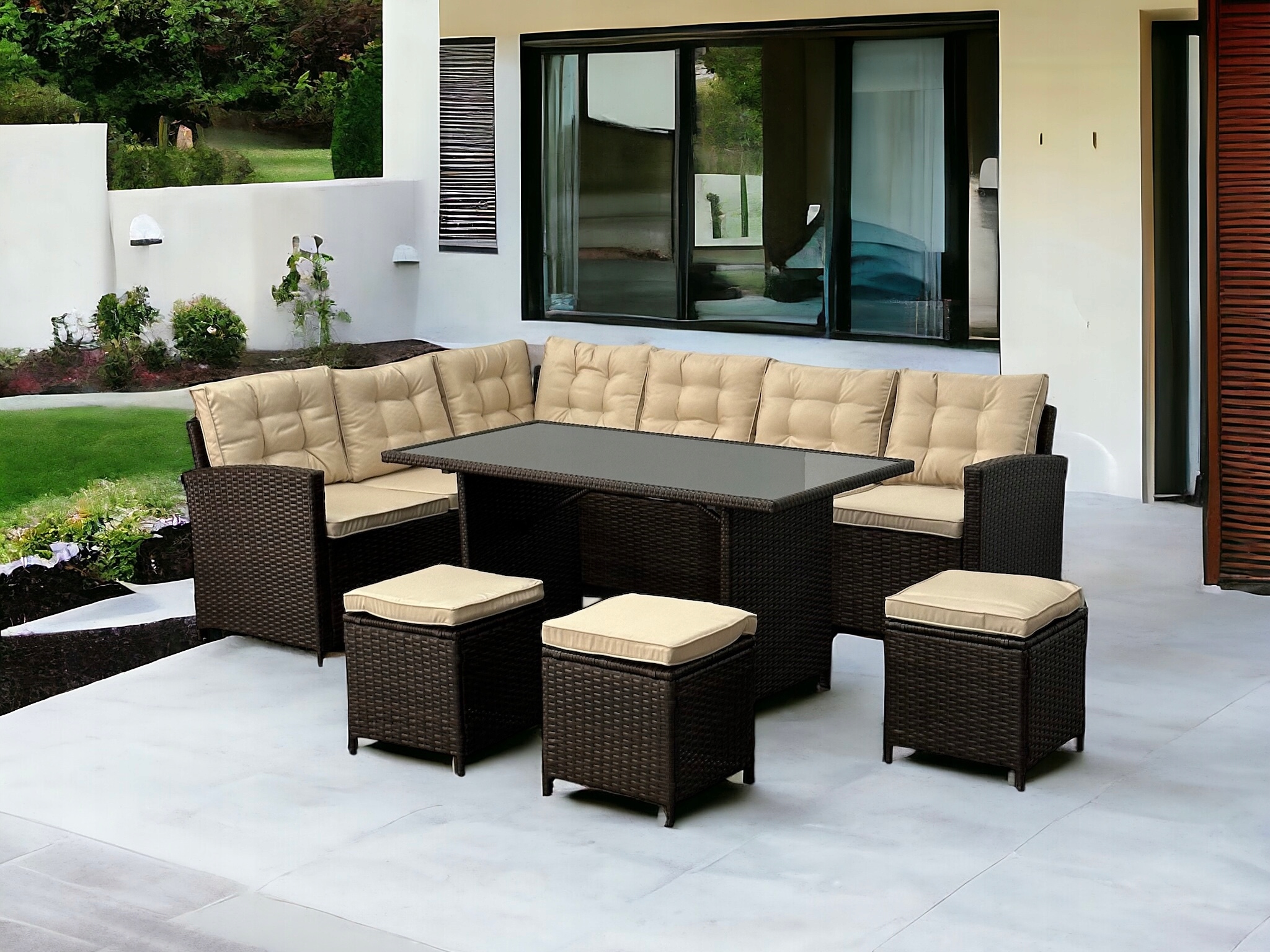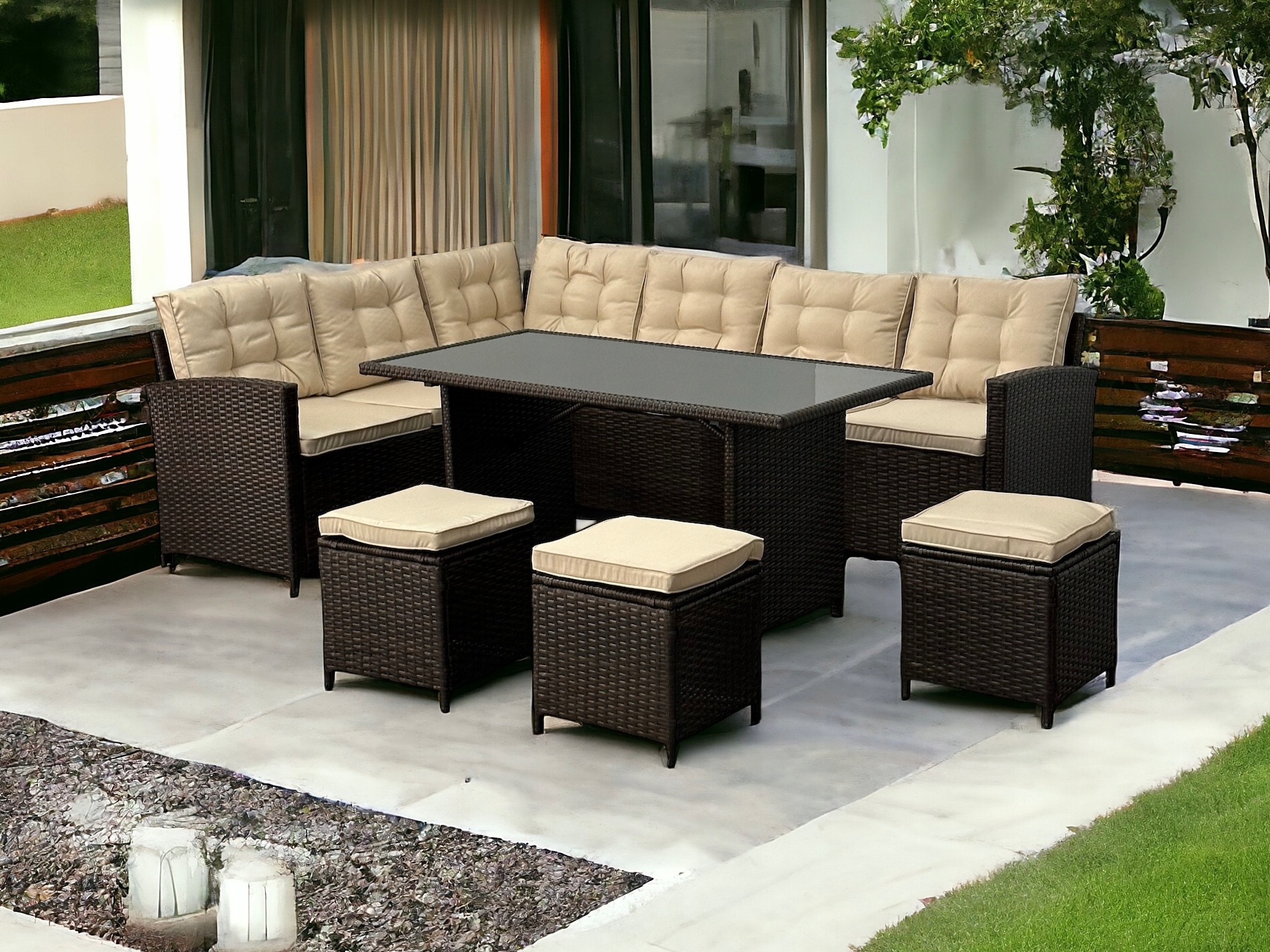 NAROŻNIK OGRODOWY SFS019 XXL DUŻY ZESTAW MEBLI OGRODOWYCH BRĄZ IDEAL GARDEN