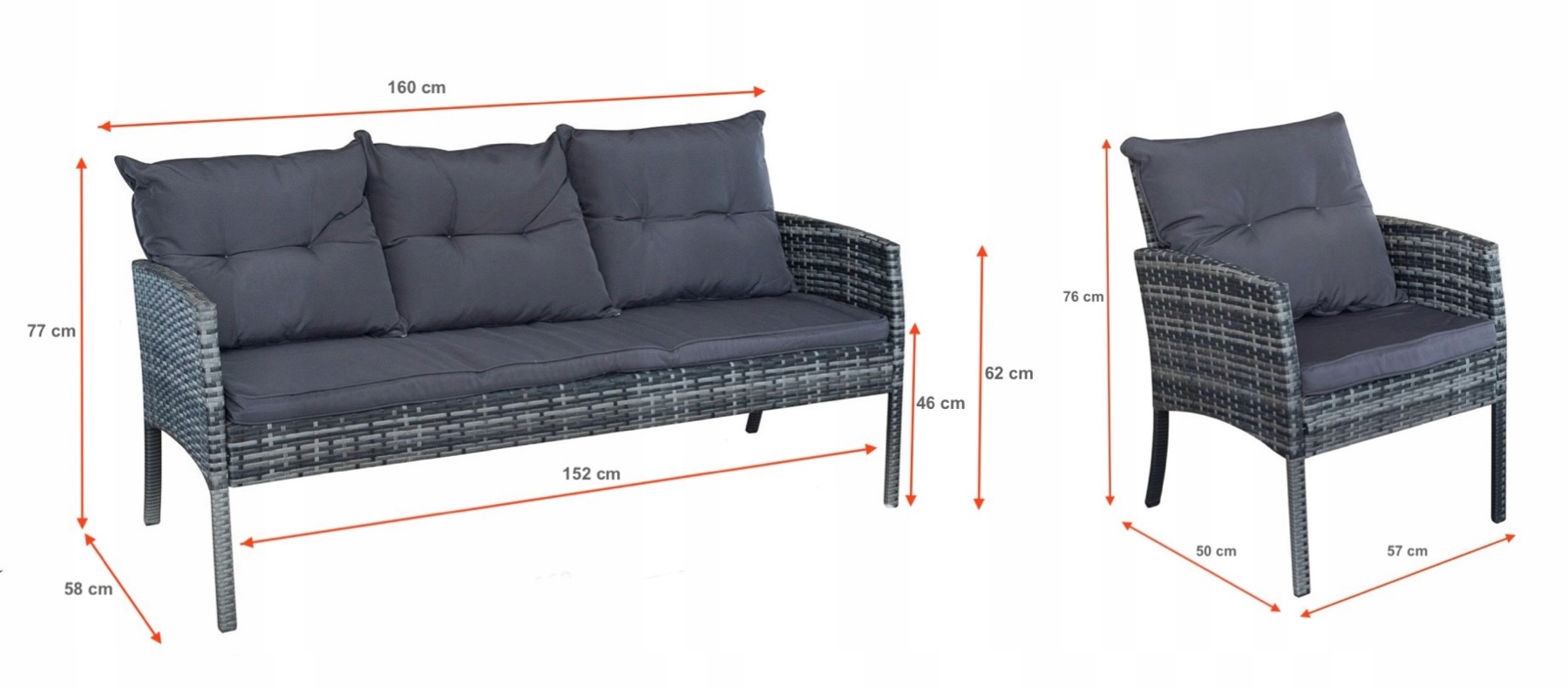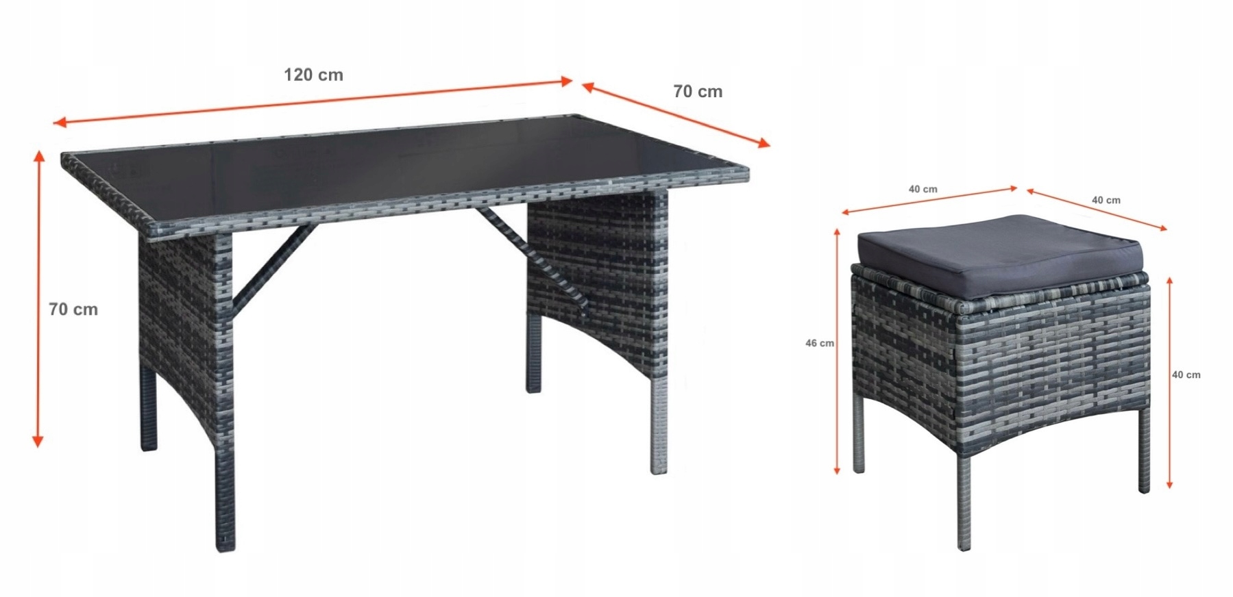 | Zawartość zestawu | fotel, ławka, puf, stół |