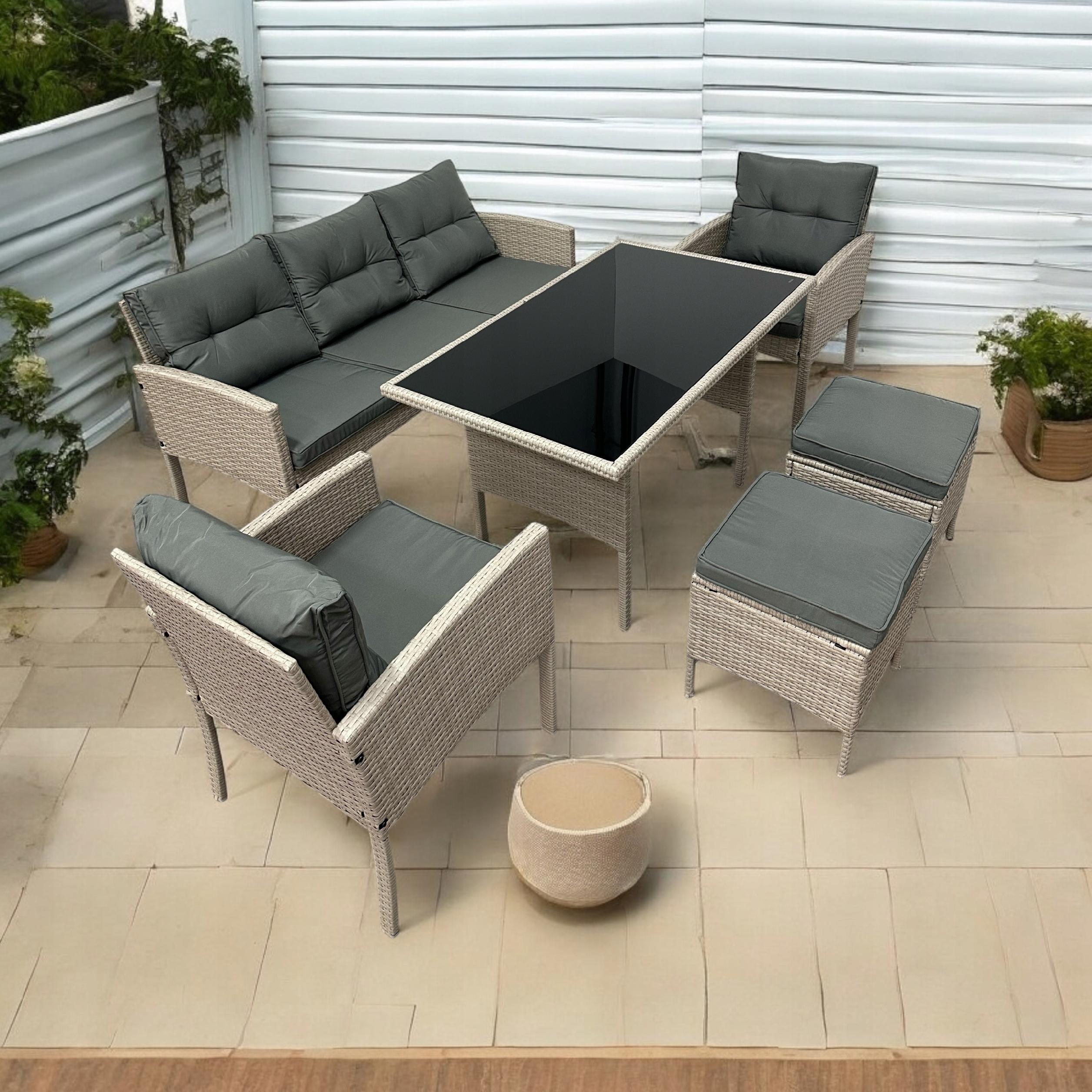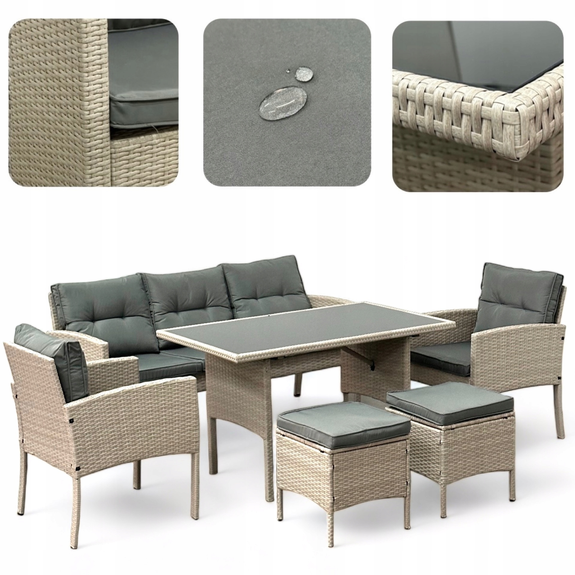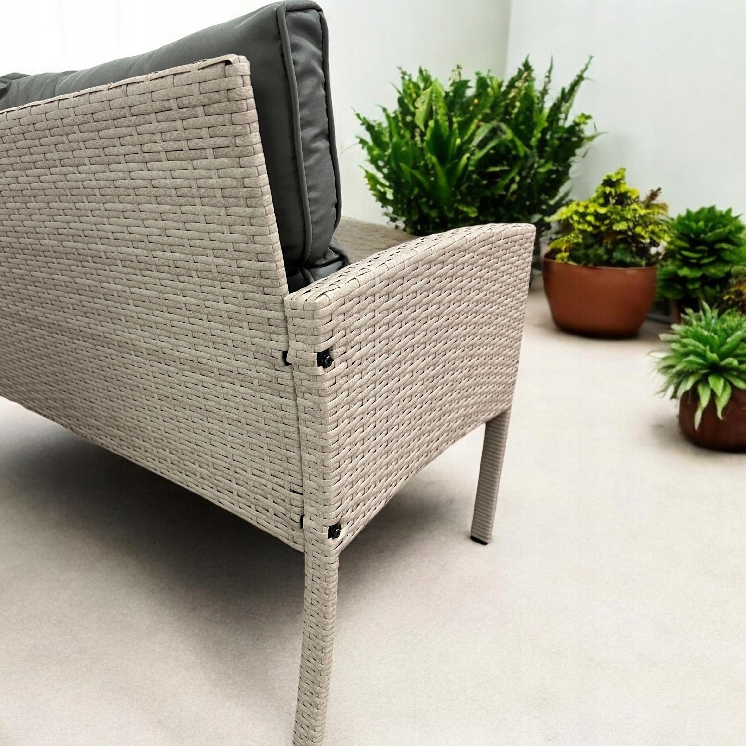ZESTAW OGRODOWY SFS078 MEBLE OGRODOWE ZESTAW MEBLI OGRODOWYCH W KOLORZE BEŻOWYM Z SZARYMI PODUSZKAMI